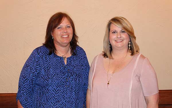 Standing from left are Melody Barton, Dutton, AL, president; and Meghan Hill Rutherford, Starkville, MS, treasurer. Photo by Mark Sims, American Angus Association.