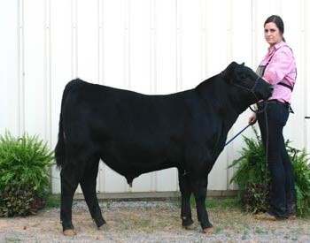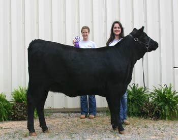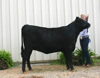 Plantation Jestress 1218 won Bred-and-Owned Intermediate Champion Heifer at the 2013 Alabama Angus Association Field Day and Junior Preview Show, May 31 - June 1 in Cullman, AL. Paige Crowell, Elrod, AL, owns the winning heifer.