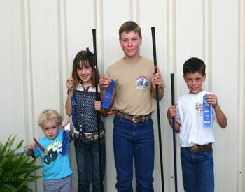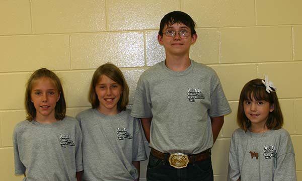 These young Angus enthusiasts won Peewee Showmanship honors at the 2013 Alabama Angus Association Field Day and Junior Preview Show, May 31 - June 1 in Cullman, AL. Pictured from left are Carson Spears, Auburn, AL; Kristin Walker, Lexington, AL; and Wesley Rogers and Jackson Rogers, both of Piedmont, AL.