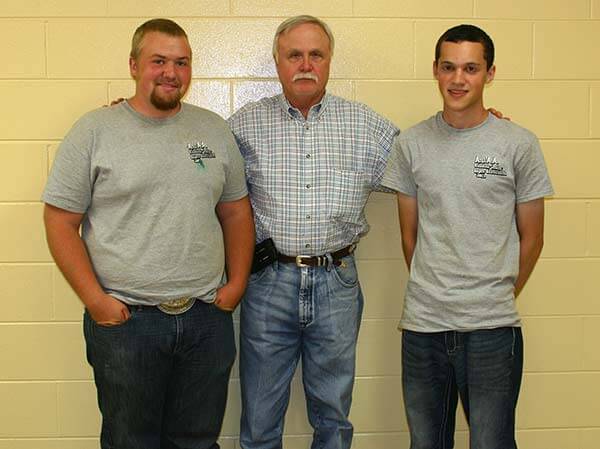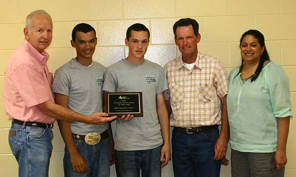 James Barton, Dutton, AL., left; and Clayton McGuire, Waverly, AL., right, received the Richard Dyar Scholarship at the 2013 Alabama Angus Association Field Day and Junior Preview Show, May 31 - June 1 in Cullman, AL Pictured presenting the award is Richard Dyar, American Angus Association Regional Manager.