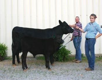 Champion Hill Georgina 7185 won Grand Champion Cow-Calf Pair at the 2013 Alabama Angus Association Field Day and Junior Preview Show, May 31 - June 1 in Cullman, AL. Carly Lindstrom, Owens Cross Roads, AL, owns the April 2009 daughter of S A V Pioneer 7301. A October 2012 bull calf sired by S A V Bruiser 9164 completes the winning duo.
