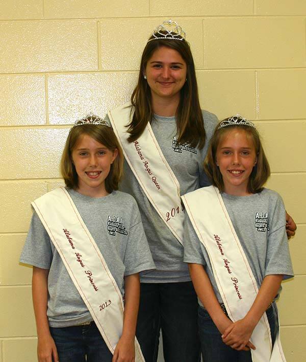 These young ladies were crowned Angus Royalty at the 2013 Alabama Angus Association Field Day and Junior Preview Show, May 31 - June 1 in Cullman, AL. Pictured from left are Aspen Adams, Union Springs, AL, princess; Caroline Nichols, Graceville, FL., Queen; and Layton Adams, Union Springs, AL, Princess.