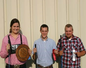 These junior members won Senior Showmanship honors at the 2013 Alabama Angus Association Field Day and Junior Preview Show, May 31 - June 1 in Cullman, AL. Pictured from left include Carly Lindstrom, Owens Cross Roads, AL, First; Clayton McGuire, Waverly, AL, Second; and James Barton, Dutton, AL, Third. Photo by Richard Dyar.
