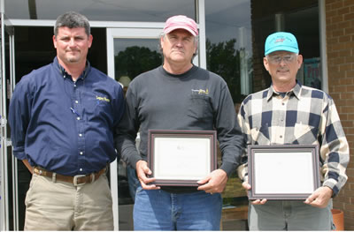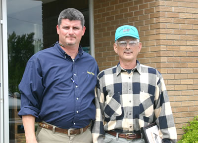 Lot 8 GAR 1407 New Design S7063 with a nice bull calf sired by GAR Concrete consigned by Black Diamond Angus. They were purchased by Raymond Evans, Wetumpka, AL and Philip Gleason, Springville, AL.